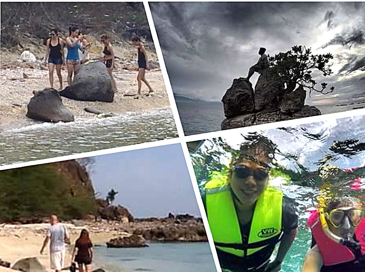 We arrived at the resort before noontime and cooked food for their lunch. They enjoyed glasses of white wine with their lunch, and after they finished, the kids played around while their parents prepared themselves for snorkelling and swimming.The families loved the sea and swimming. Ornell and his son, Ilan swam a lot on their stay here. For a change from the rock and pretty corals, they walked to Mahabang Buhangin for the sand bar and swam there too.